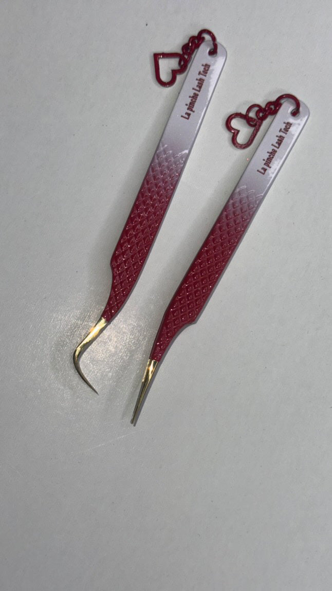 Hook curve fanning tweezers with a straight isolation tweezers including are cute heart chains